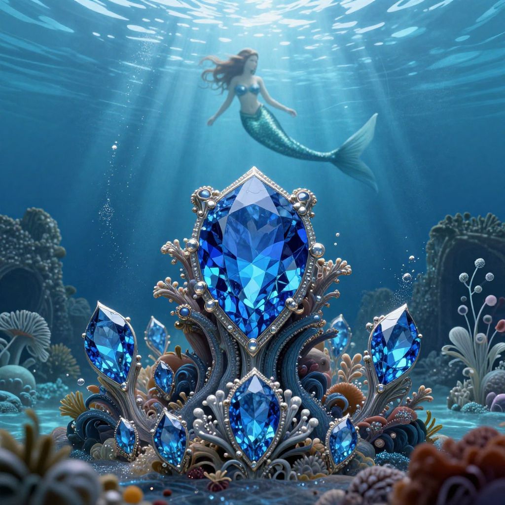 Intricately Designed GEYSER Blue Oceanic sanctuary Sapphires behind background Mermaid, realistic, magic, add, mythology, fantastic, illustration, GENZOMAN, DevianArt,
