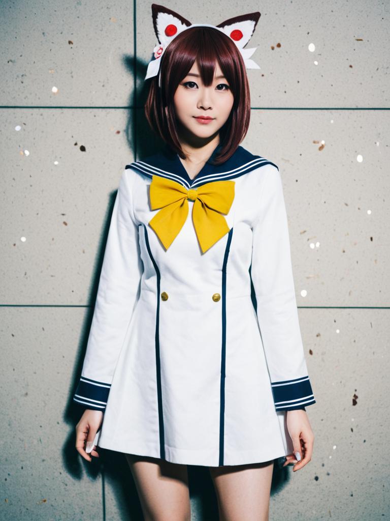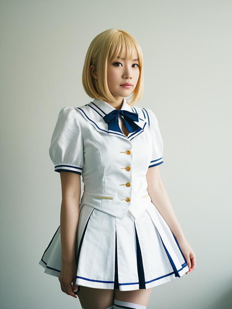 Sexy cosplay woman character wearing Hanamaru Kunikida costume. Realistic photo. Jane Doe dressed as Hanamaru Kunikida