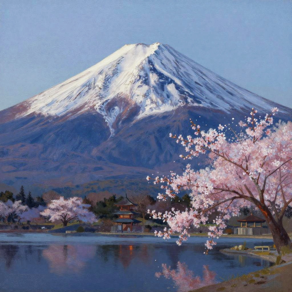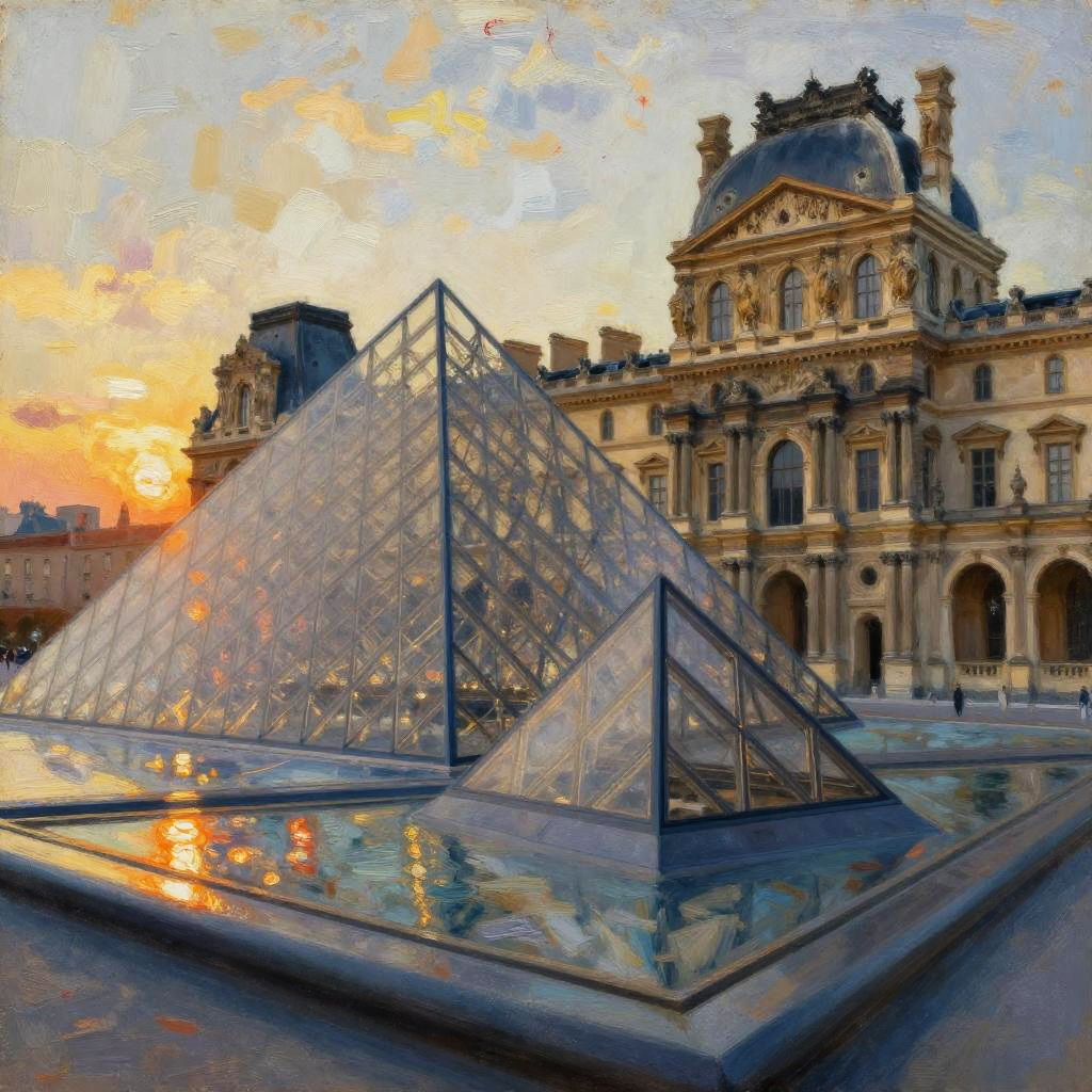 Impressionistic Oil Painting of Taj Mahal at Sunset