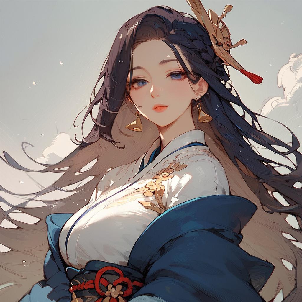 Anime-style Japanese Girl with Floral Kimono and Tattoos