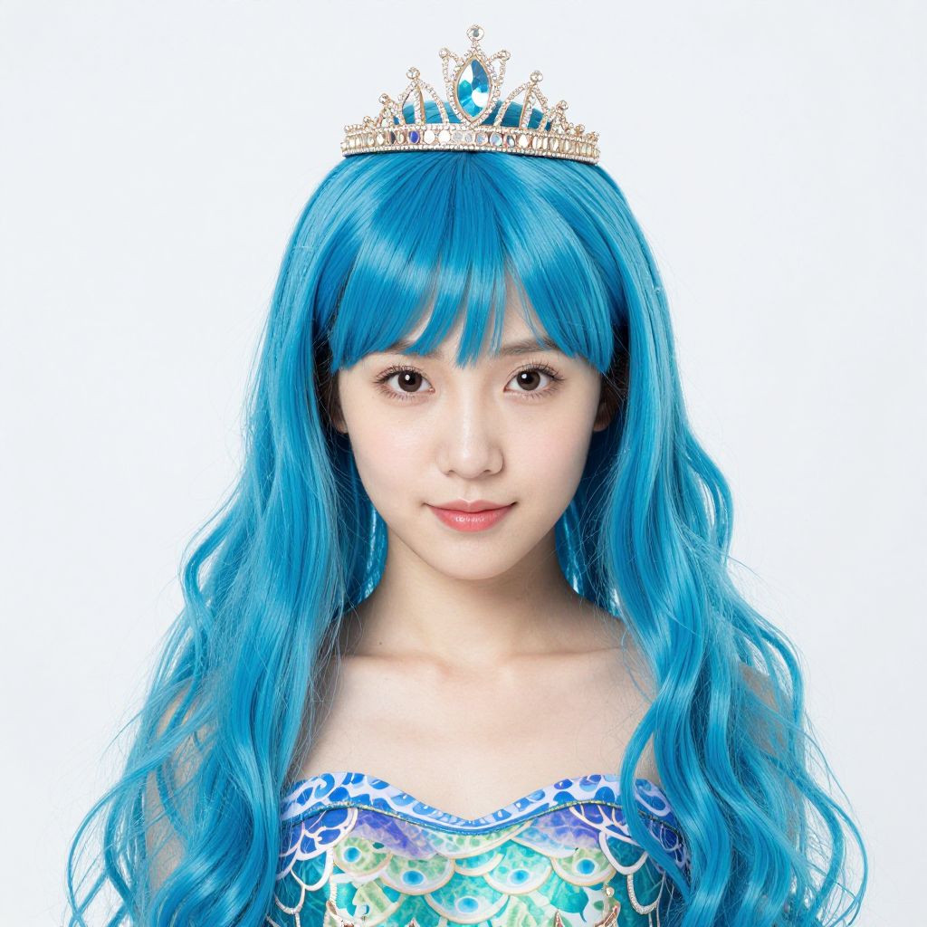 Mermaids Cher Costume, a close up of a mermaid with blue hair and a crown