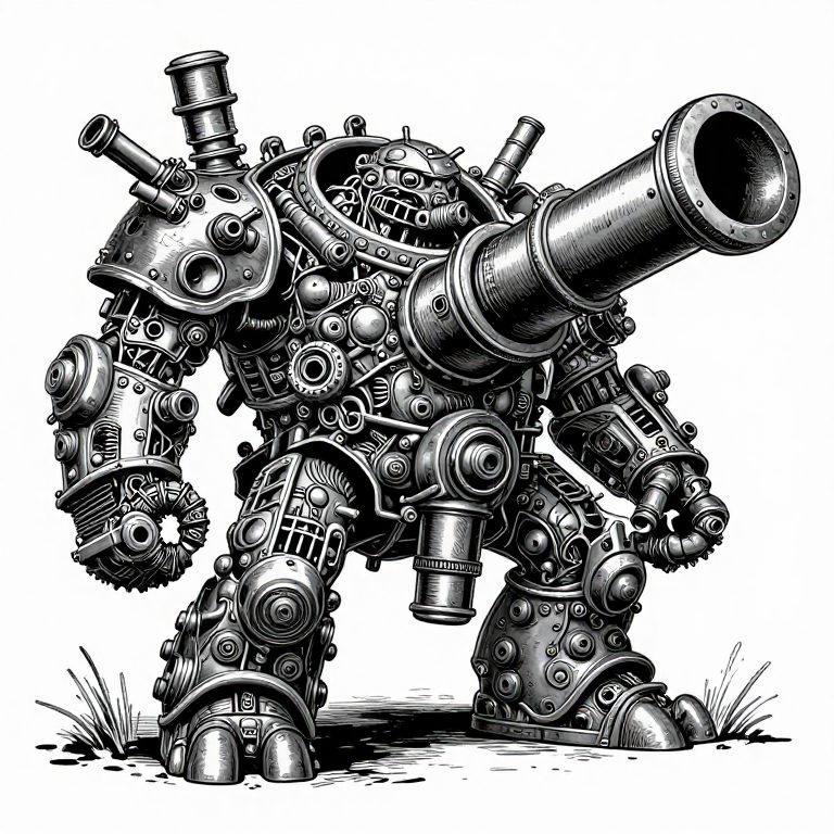 Woodcut Illustration of Enormous Ork Cannon