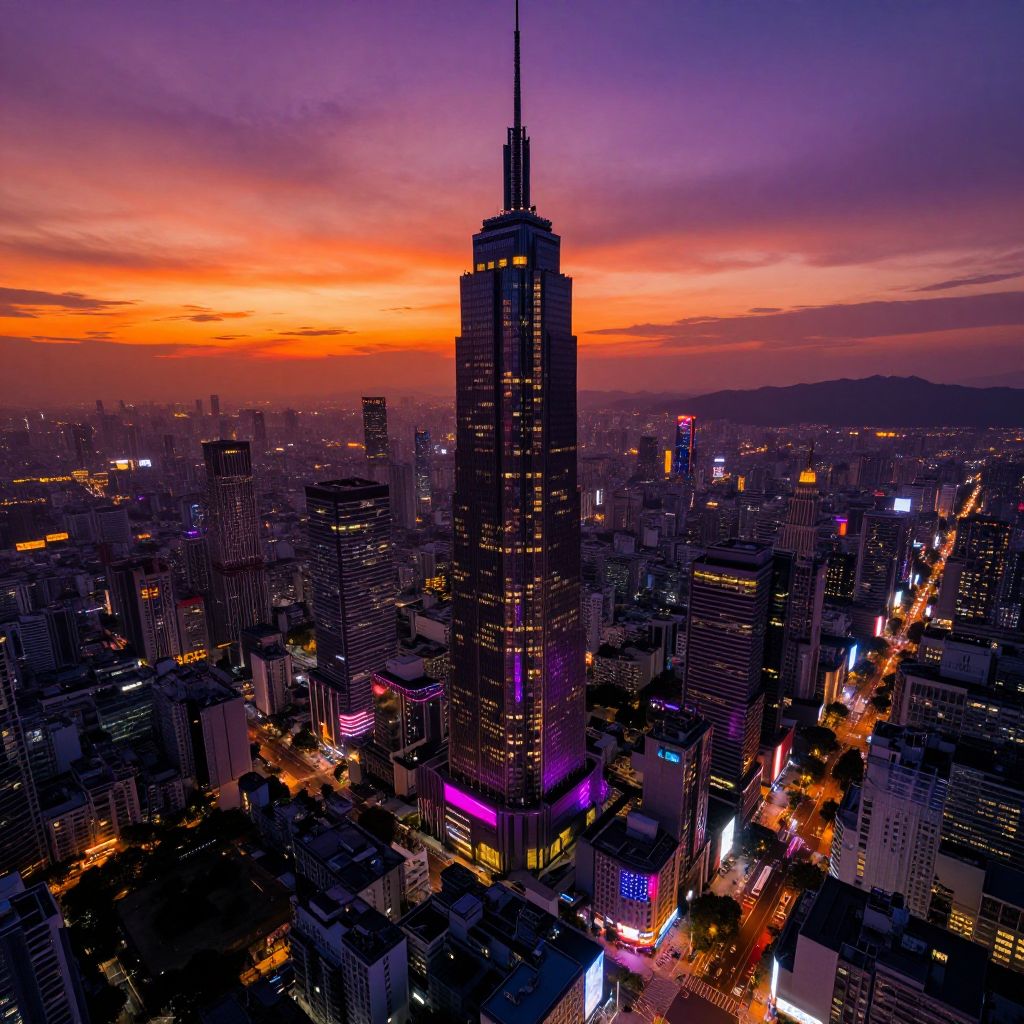 Futuristic Neon Cityscape at Dusk
