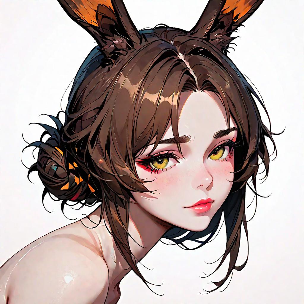 Shy Full-Body Girl with Bunny Ears