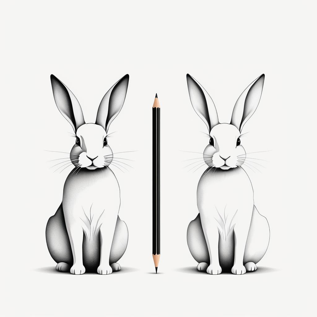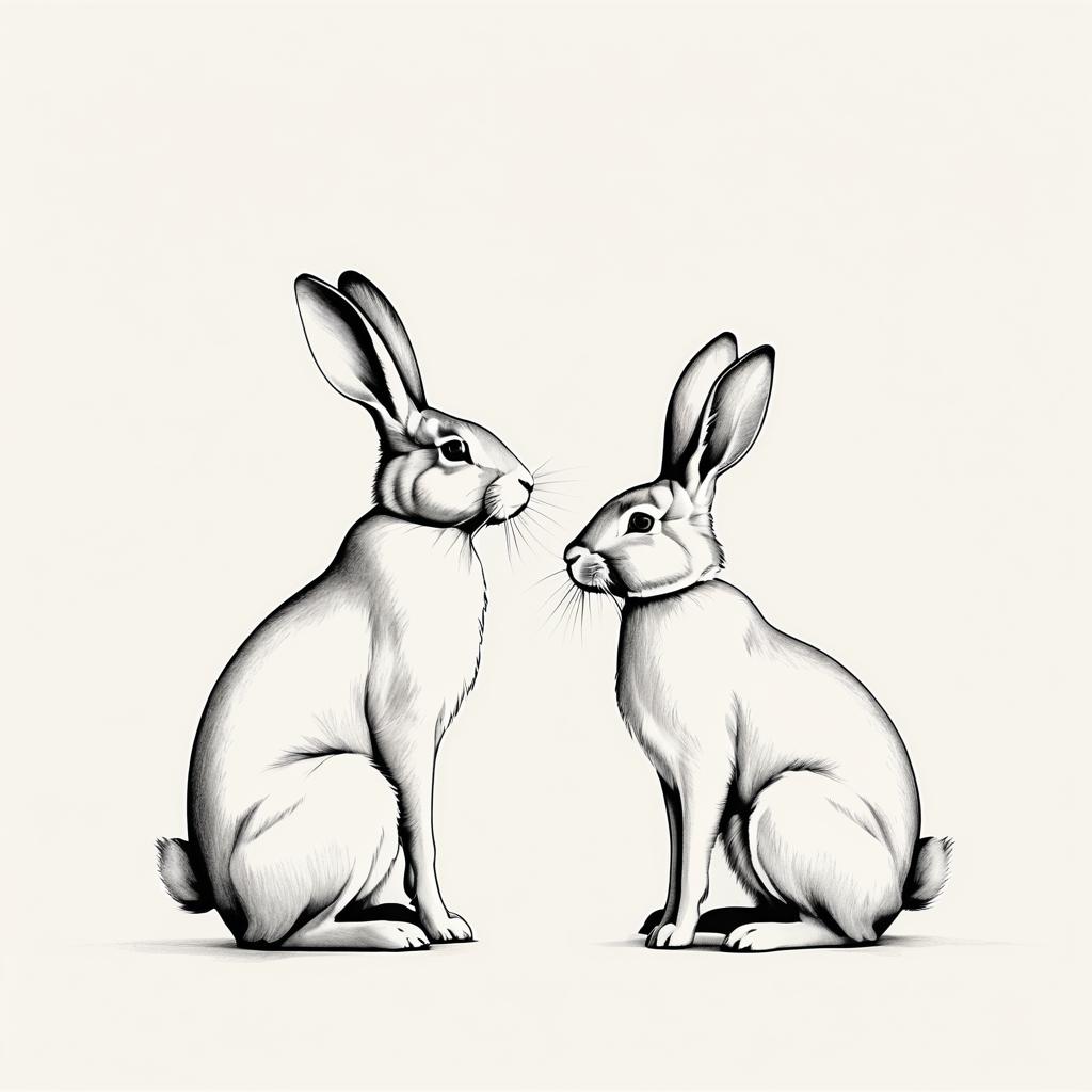 Male and female rabbits depicted as a minimalist pencil drawing, simple and elegant.