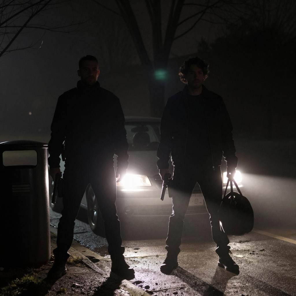 Dramatic Scene of Four Men by Car
