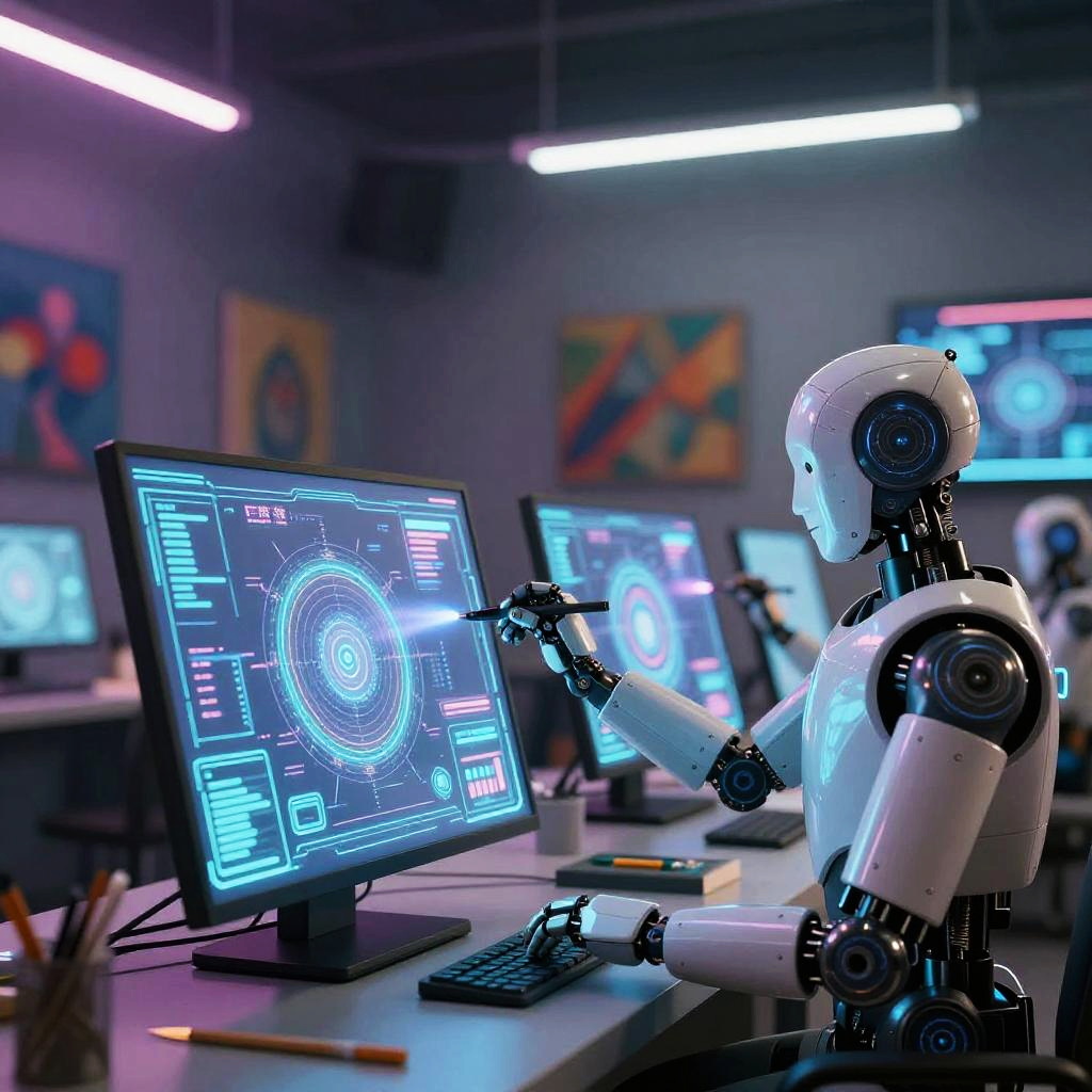 Futuristic AI Art Studio Scene