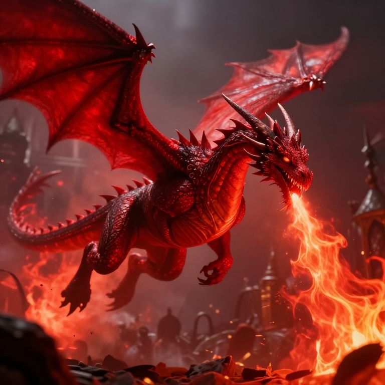 Ruby Dragon Breathing Fiery Flames