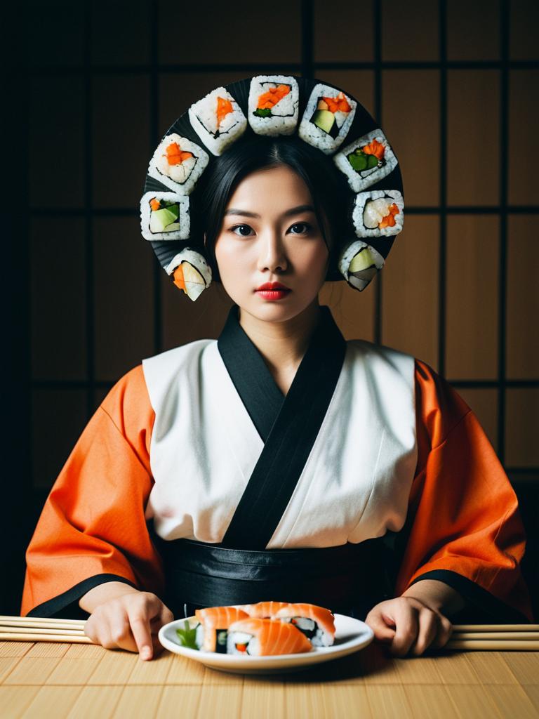 Sushi Roll Costume Photorealistic Outdoor Portrait
