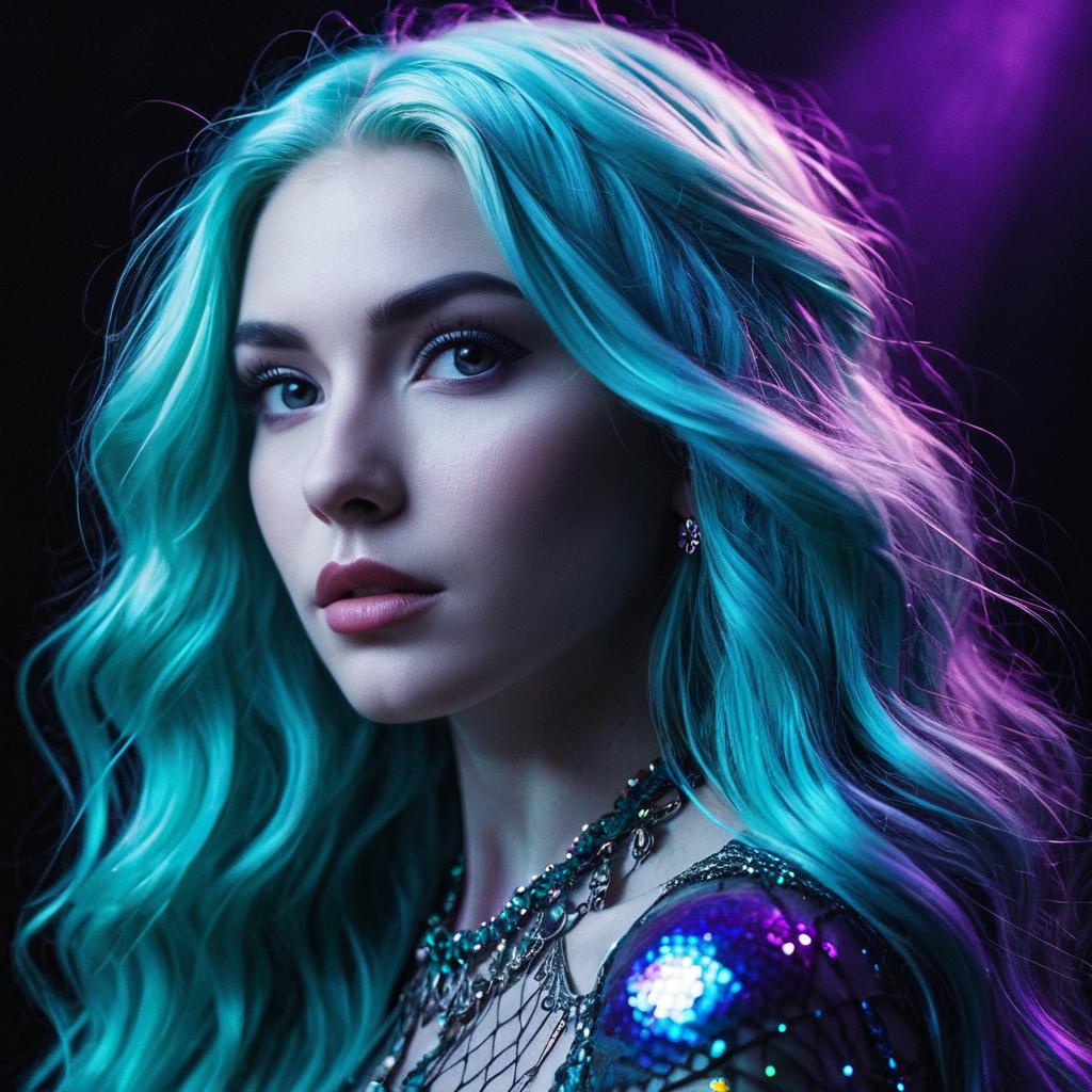 Beautiful female vampire in the style of Audrey Benjaminsen, with mysterious aura, soft pastel blue hair, alluring and detailed