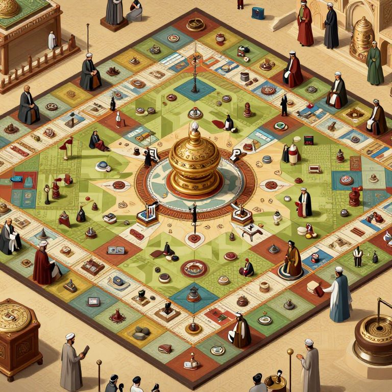 Spiritual Awakening Traders from the kingdom of Saudi Arabia in 1900s, isometric, hyper - detailed, boardgame art,