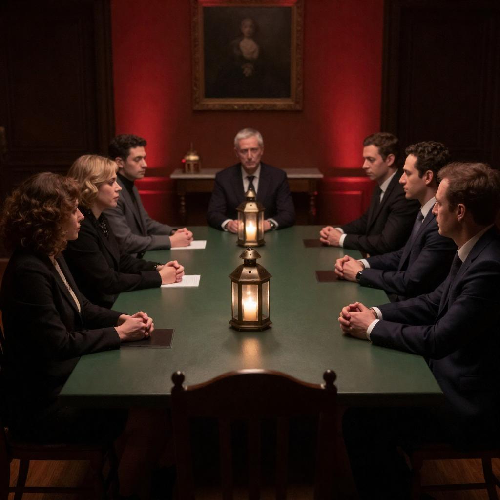 Mysterious Gathering Around Green Table