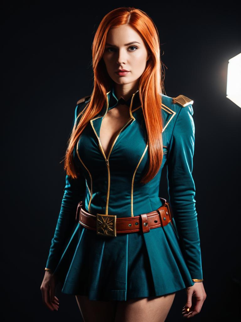 Sexy cosplay woman character wearing Roberta costume. Realistic photo. Jane Doe dressed as Roberta --sref 1399
