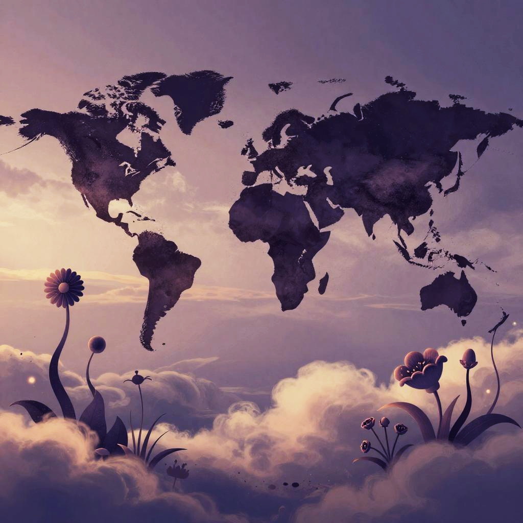 Dreamy Cloudscape with Whimsical Flora