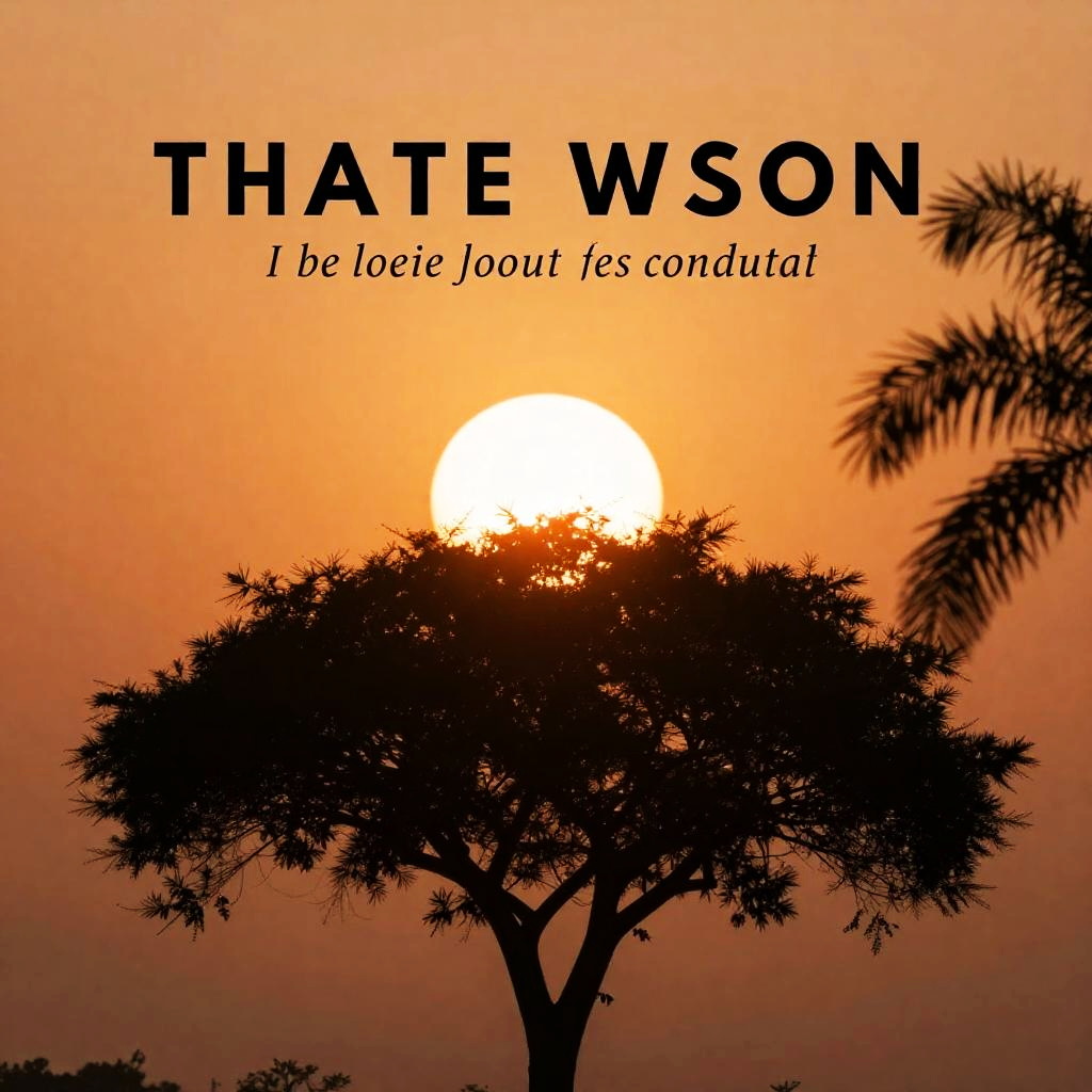 Silhouette of a large tree and a palm tree during sunset with a bright orange sky. A bold black title and subtitle text overlay add a graphic design element, suitable for cover page or comic doujin use.