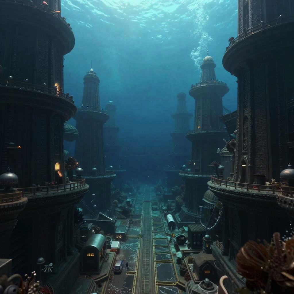 (masterpiece, best quality:1.2), ultra detailed, cinematic lighting, HDR, ilustration, landsape, (underwater), underwater city, city street, impressive, chill, inspirational