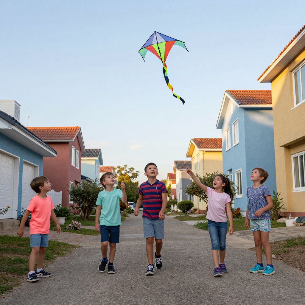 Under a boundless sky, vibrant kites dance with the wind, symbolizing freedom and hope, while people gather by the serene waters, their laughter and whispers weaving a tapestry of shared joy and connection.