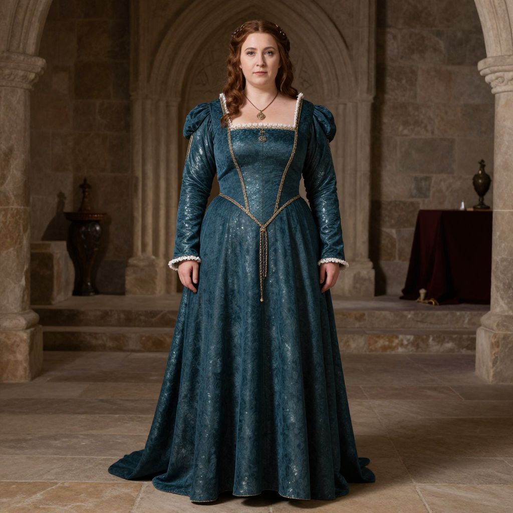 Medieval Queen Costume Plus Size, a woman in a medieval dress standing in a hall