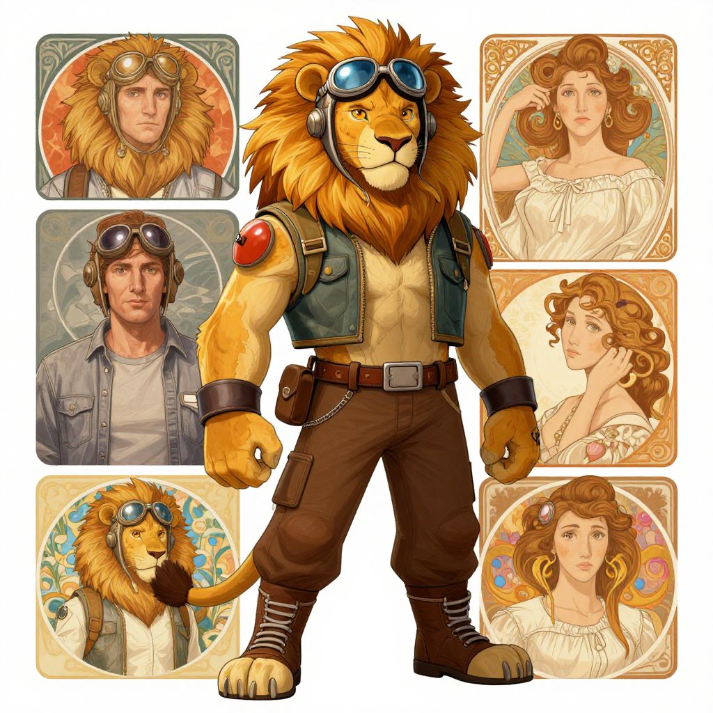 Anthropomorphic Lion Aviator Character