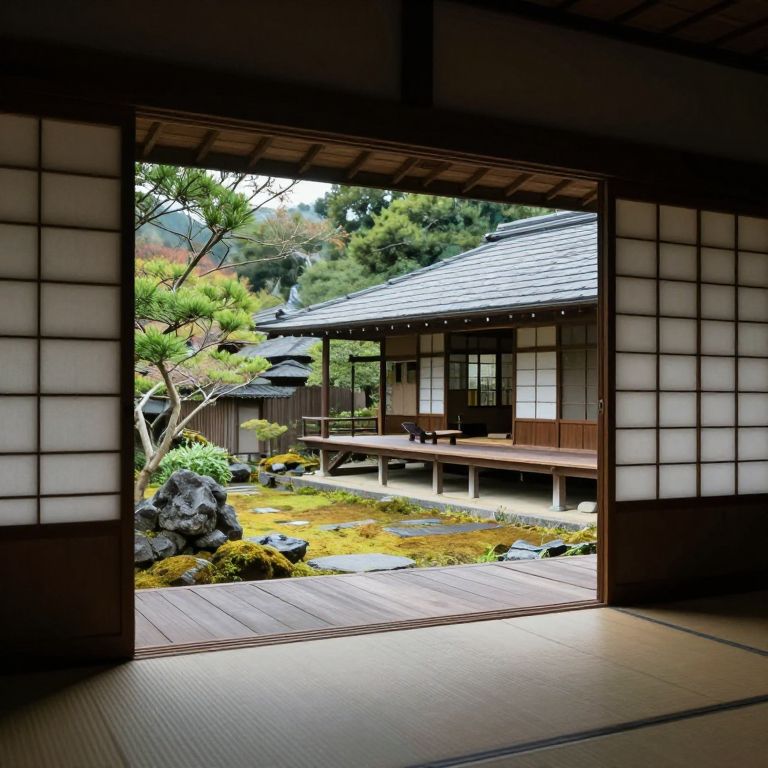 Particle Effects countryside house japanese interior, photography, calm telmple home, nature, build by an old zen master,