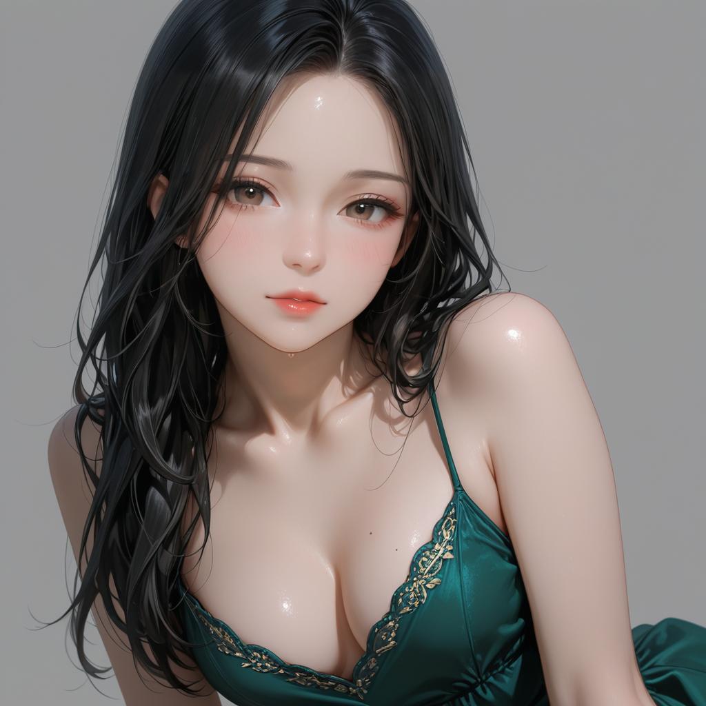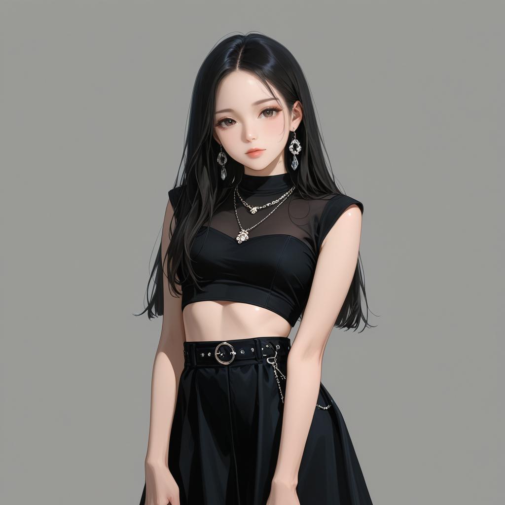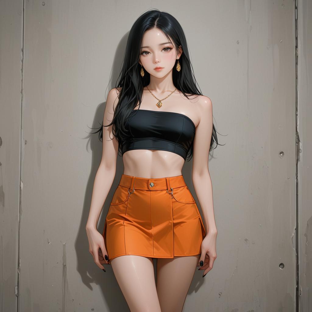 Realistic Portrait of Woman in Green Crop Top and Black Skirt