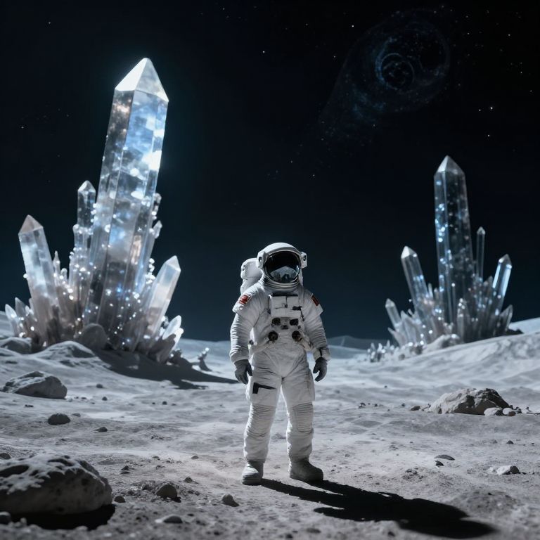 Iwao178 ai style: A lone astronaut standing on a moonlit desert planet, surrounded by towering crystalline structures and strange alien landscapes, rendered in a cinematic, high-resolution AI art style with deep space atmosphere.