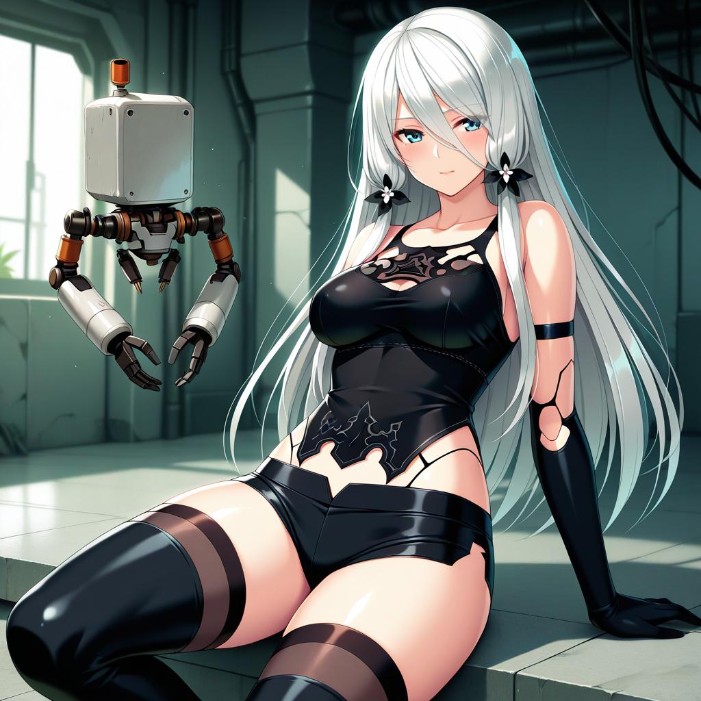 Illustration of A2 (nier:automata), nier (series) in the style of Cygnus (cygnus7)
