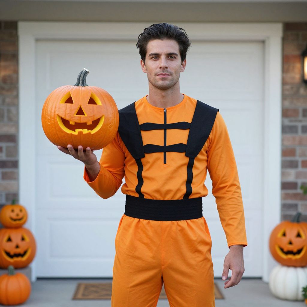 Man Holding Pumpkin in Cozy Room