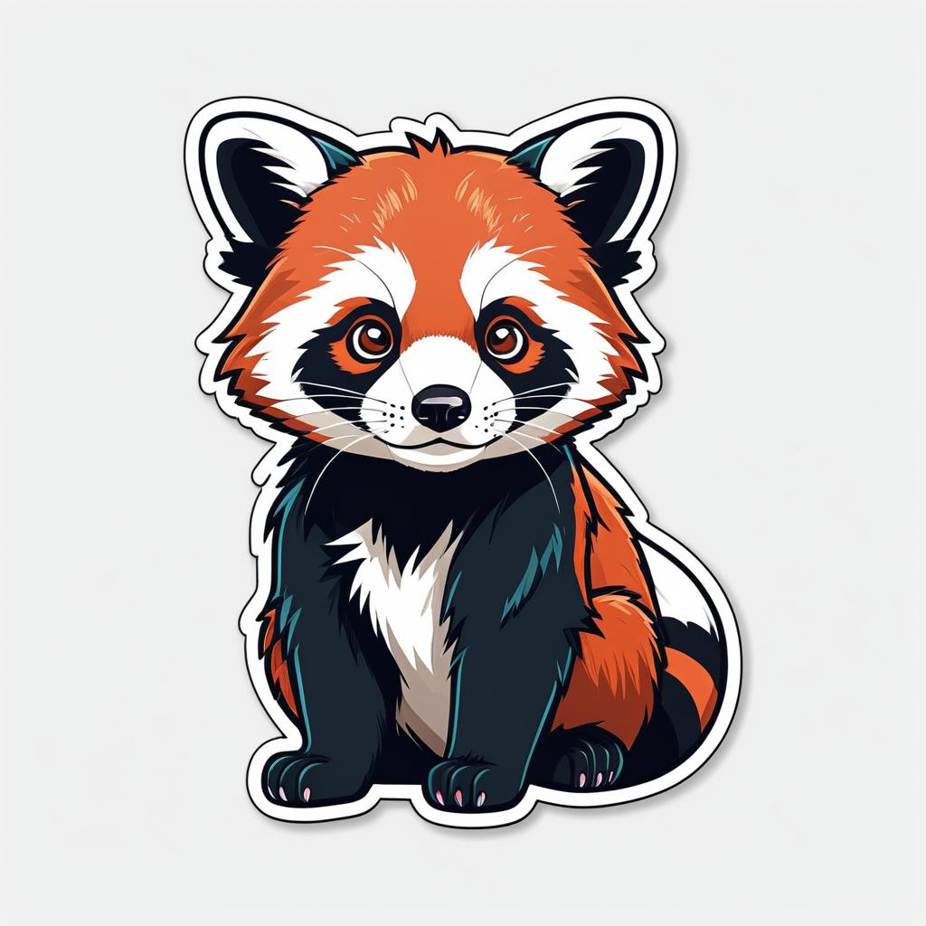A cartoon-style die-cut sticker of a curious red panda character. Vector line art, dynamic outlines, pastel colors, HDR, 16K resolution, white background, crisp and modern aesthetic