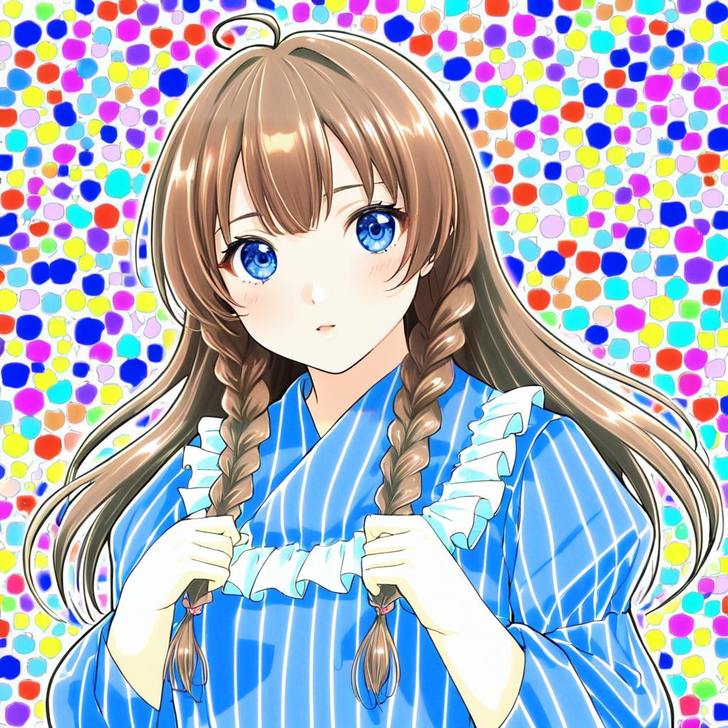 Arika yumemiya, my-otome, 1girl, blue eyes, brown hair, long hair, ahoge, twin braids, by artist tsukudani (coke-buta), anime