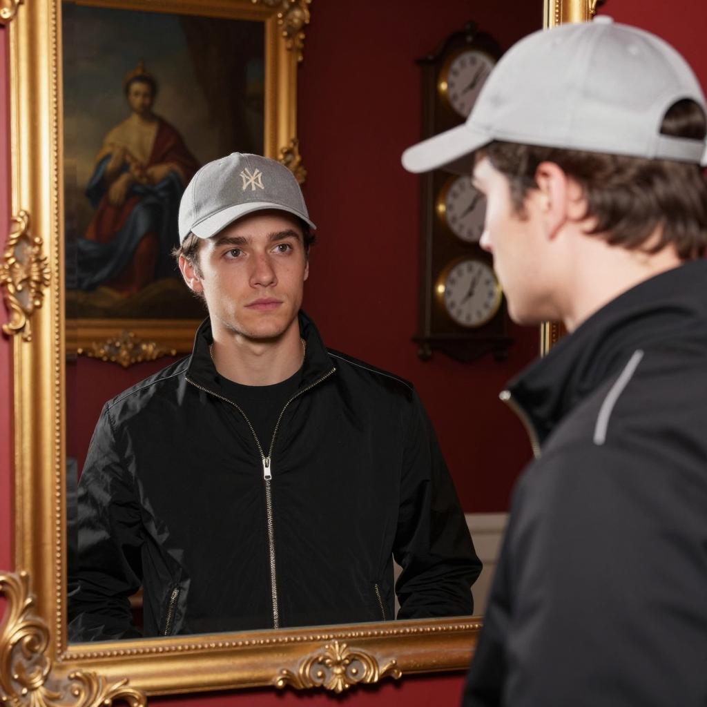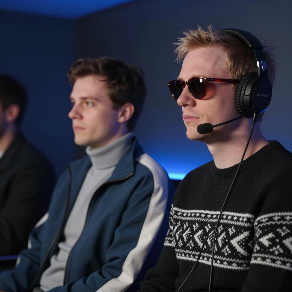 Photograph of two men in a dimly lit club. Left man in black leather jacket, black cap, shouting, intense expression. Right man with brown leather jacket, glasses, gesturing, focused expression. Background includes blurred figures and a pink lamp.