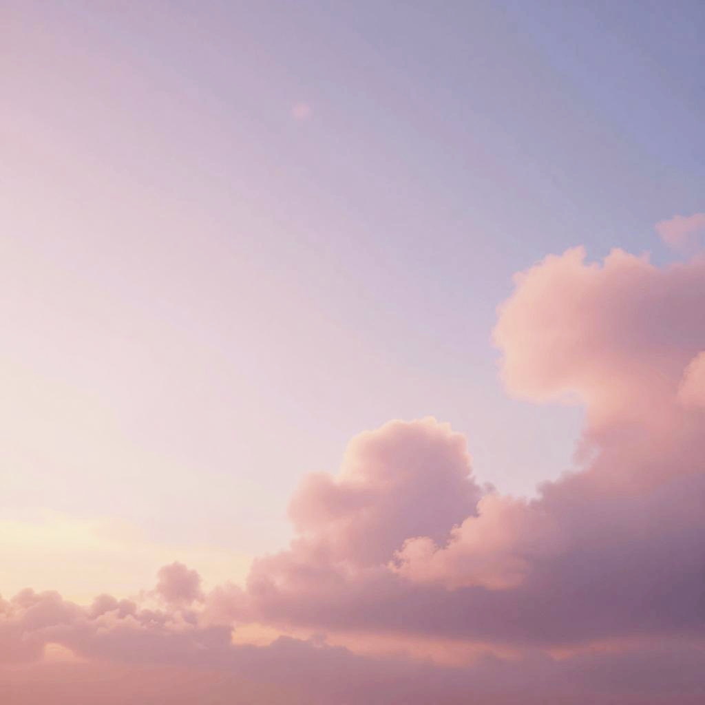 Calm Fortnite sky background during dawn, with soft pink and pastel tones, gentle clouds, and a glowing horizon to evoke a peaceful yet adventurous mood reflective of the game.