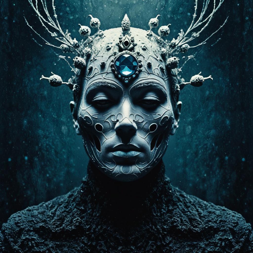 Surreal Ominous Figure with Antler-like Headpiece