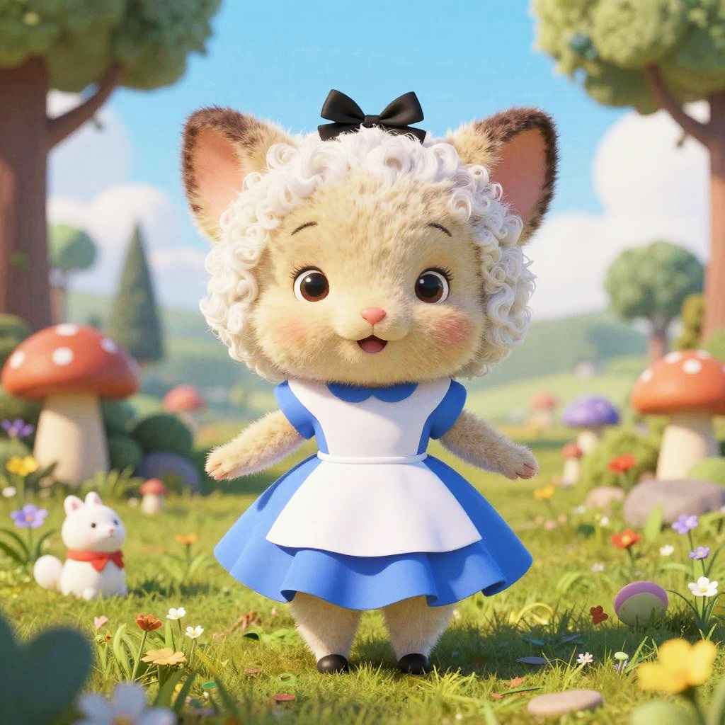 Cutie fluffy creature Charlie Chaplin, digital art, 3D, octane render, masterpiece, mega detailed, pixar, disney, vivid illustration, cartoon, fantasy, by Glen Keane, Julie Bell