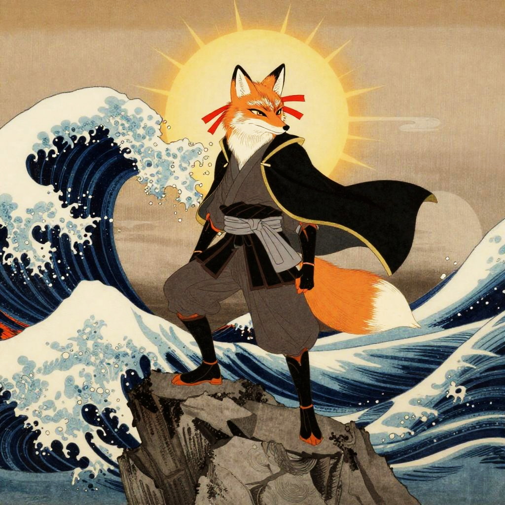 Heroic Otter Samurai Ukiyo-e Scene