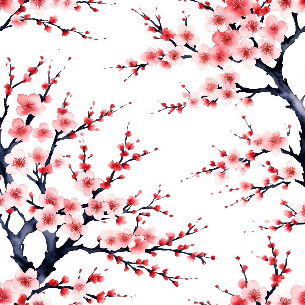 Cherry blossoms created in traditional Japanese watercolor, capturing cultural elegance.