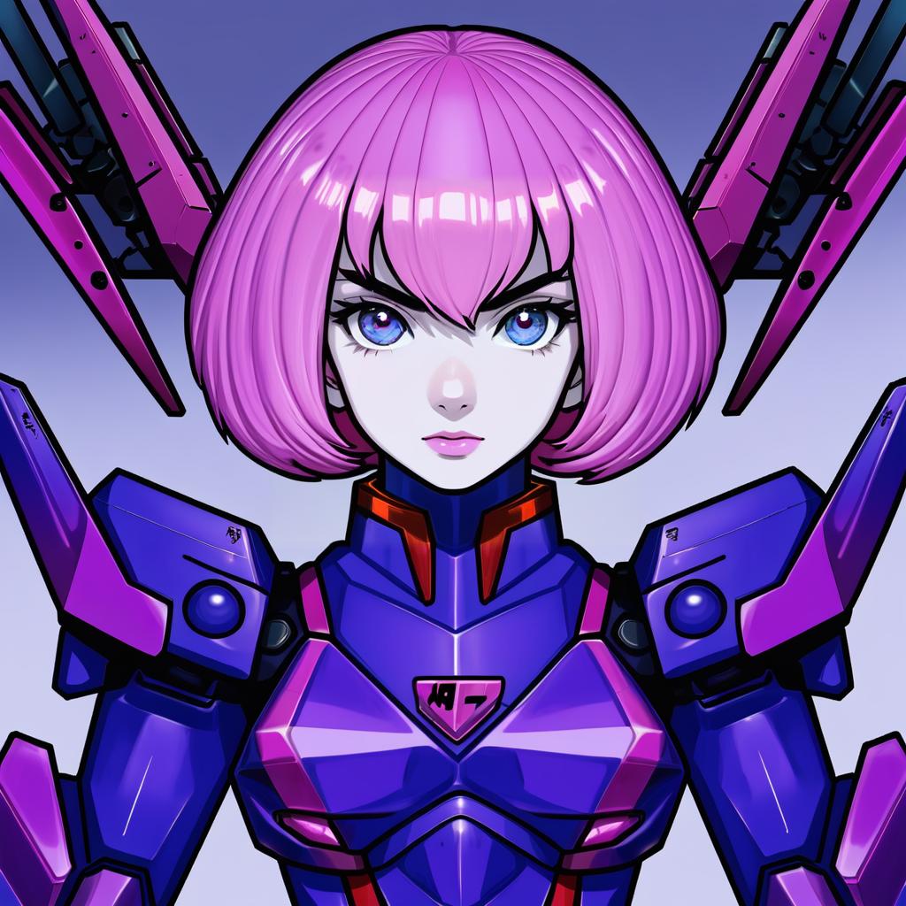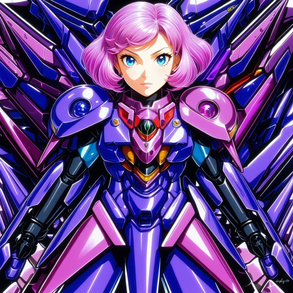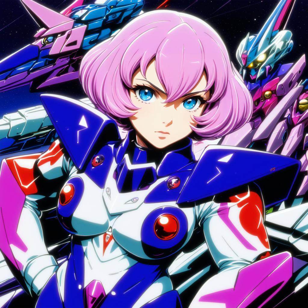 Haman karn, gundam, 1girl, purple eyes, blue eyes, pink hair, short hair, medium breasts, by artist mil (xration), anime
