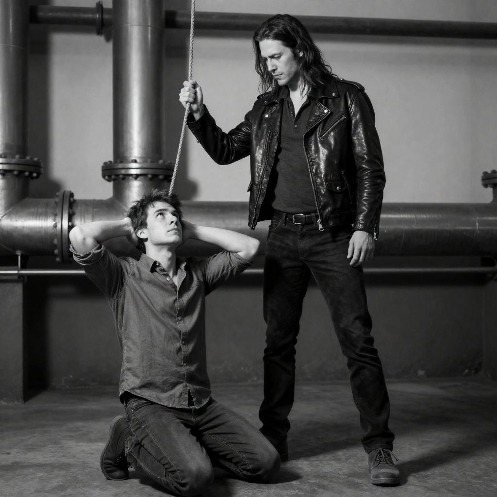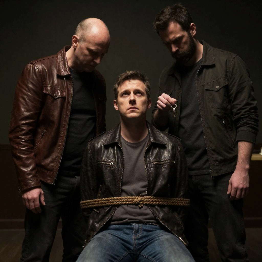 Dramatic Kitchen Scene with Masked Figures