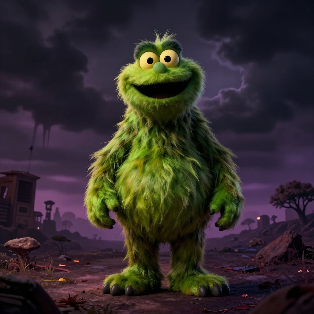 Ominous Grimace in Surreal Landscape