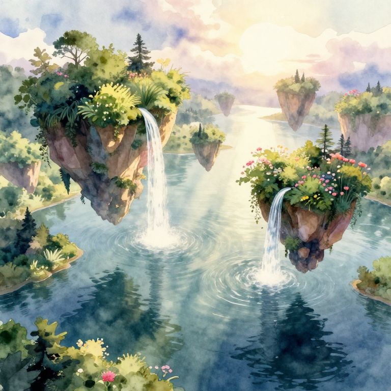 Dreamy Surreal Floating Islands Landscape
