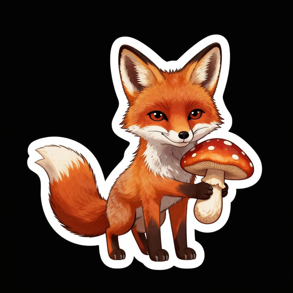 Fox Holding Mushroom Sticker Design