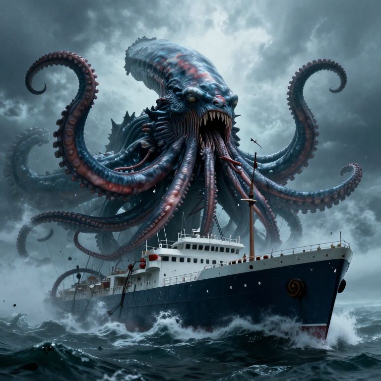 Apocalyptic Kraken Attacking Ship