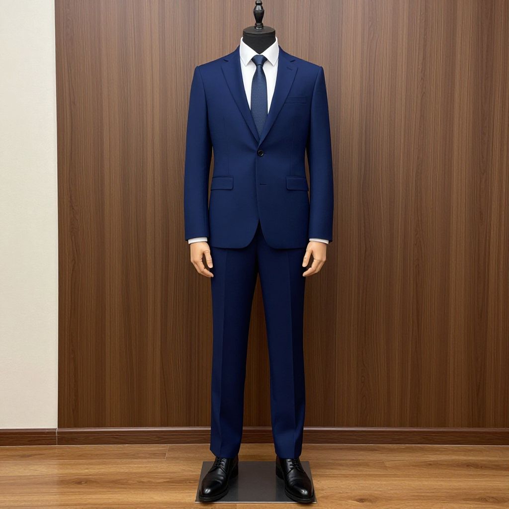 Jotaro Costume, man in a blue suit and black shoes standing in a room