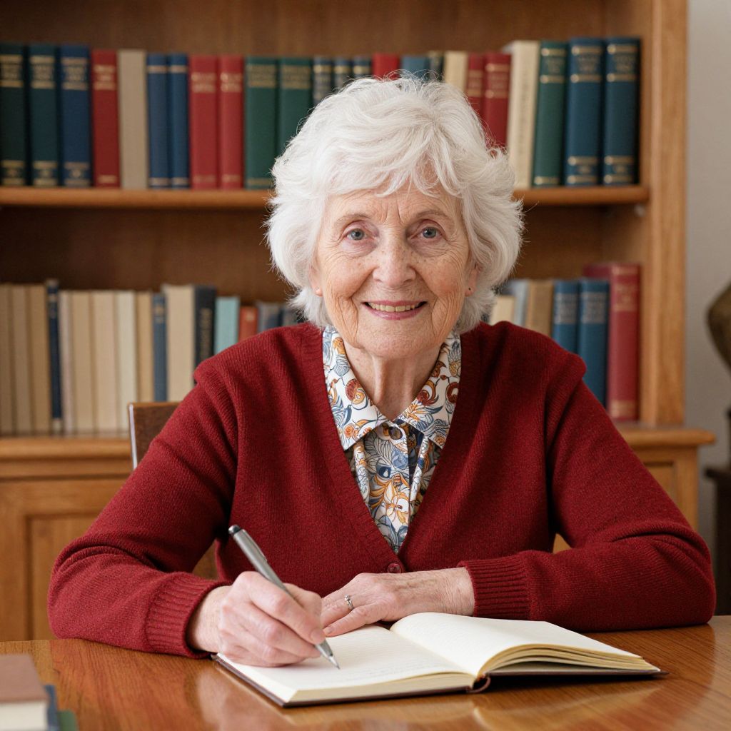 Elderly Woman Writing in Cozy Setting