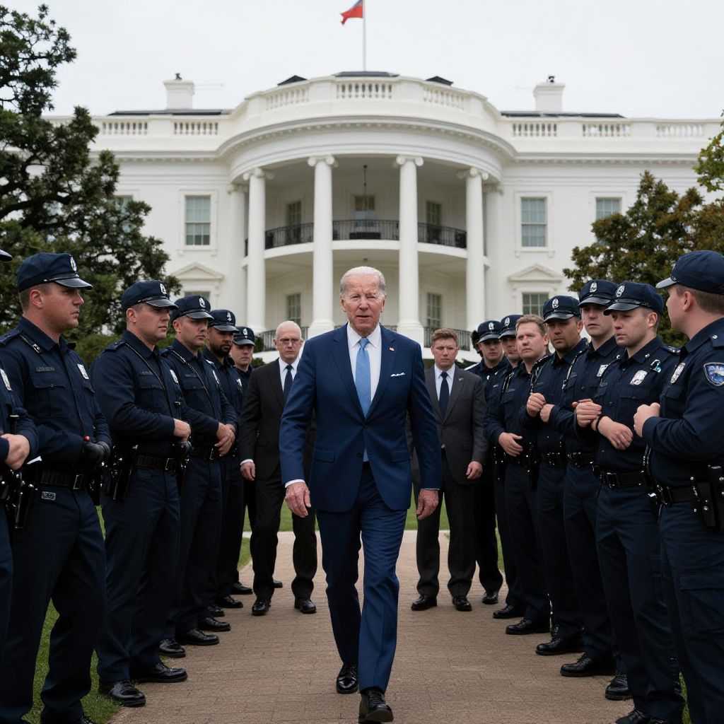 Suprematism 16k photo realistic highly detailed, joe biden escorted from white house by angry mob of policemen,