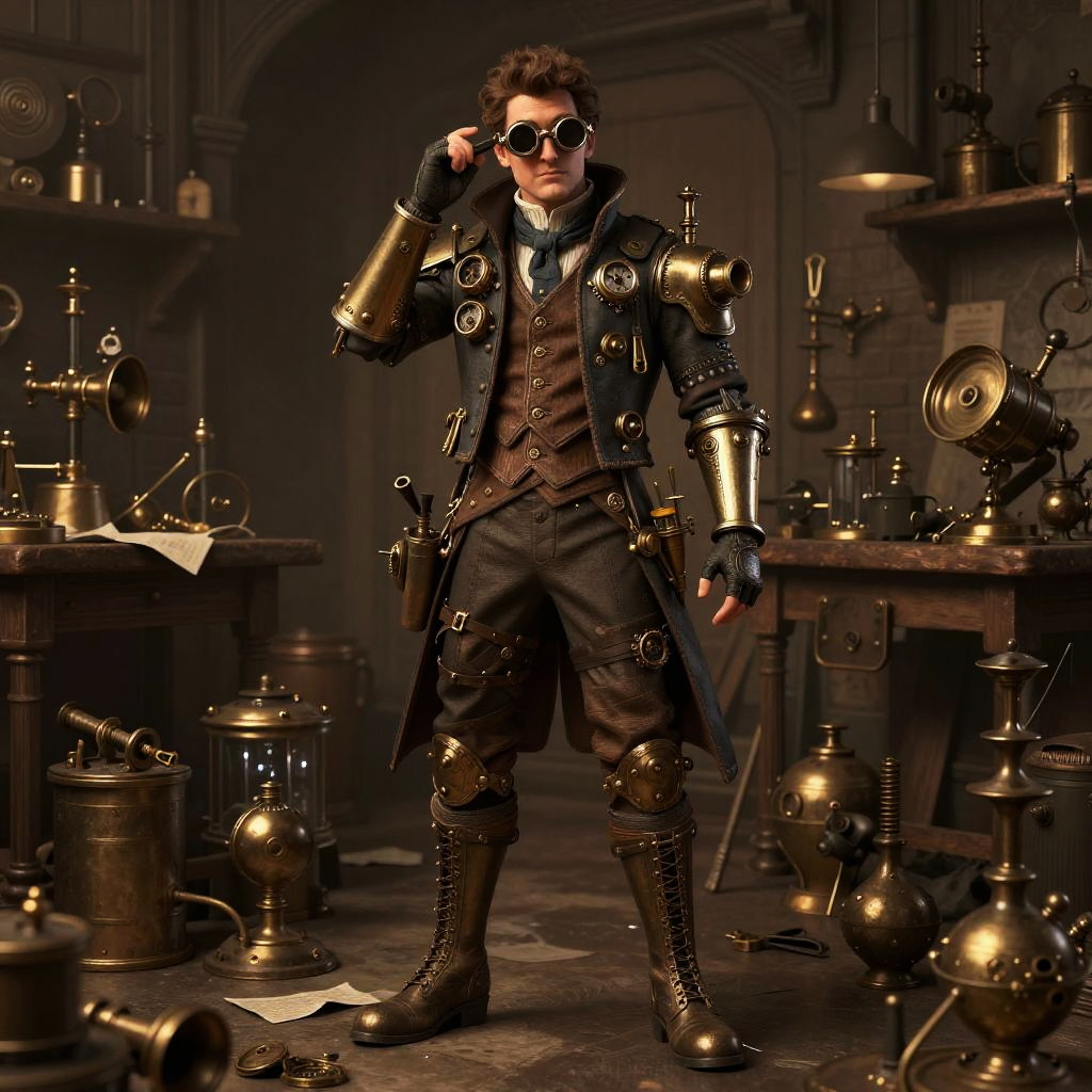 Notorious characters depicted as steampunk antiheroes, surrounded by intricate machinery and gears, sepia tones, smoky background, intense and mysterious vibe