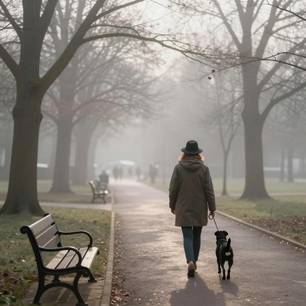 Foggy Park Stroll with Dog