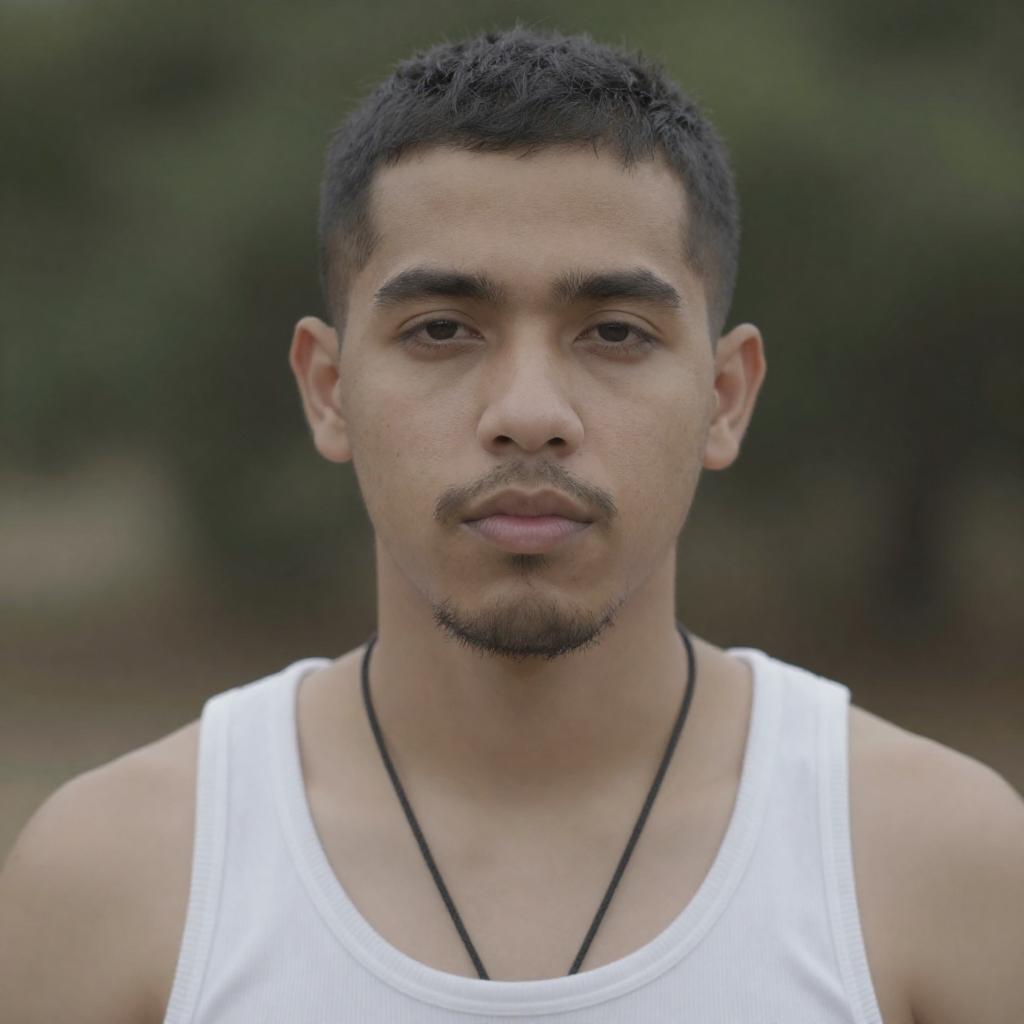 Photograph of a heavyset man with medium brown skin and black goatee, wearing a white straw hat and plaid shirt. He looks to the side with a slightly puzzled expression. Background shows blurred greenery. Light, natural outdoor setting.