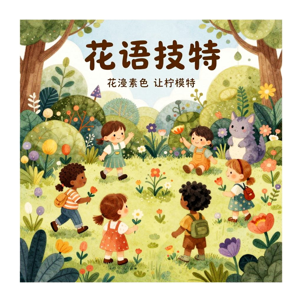 Create children's book illustrations online free, depicting diverse children exploring enchanted gardens with talking flowers and mystical creatures, illustrated in a warm and inviting watercolor style with intricate details and soft textures.