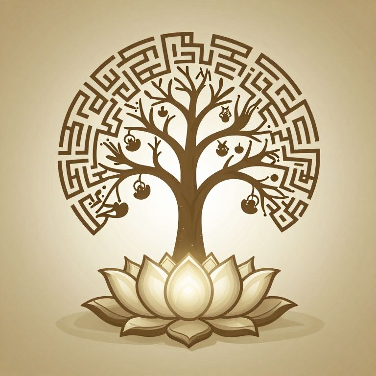 Gesture Control tree of life on a lotus at the center of a labyrinth, symbolizing spiritual growth and consciousness,